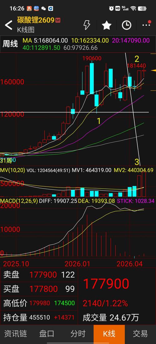 $碳酸锂2606(GFEX|lc2606)$估计很快20万了,主力习惯瞬间拉升