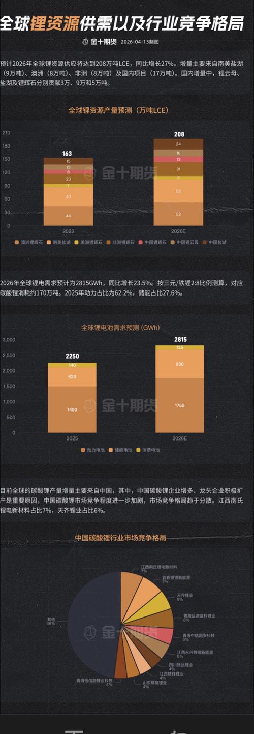 $碳酸锂2605(GFEX|lc2605)$ 【智利SQM高管:预计2026年碳酸锂价格将维持在15-18美元/公斤】金十期货4月13日讯,据外媒报道,智利锂矿商SQM的一位高管周一在智利圣地亚哥表示,公司预计2026年碳酸锂价格将维持在15-18美元/公斤区间。该公司高管CarlosDiaz表示,价格可能会不时波动,但今年碳酸锂价格的最终区间就在这个范围内。 (来自金十期货APP) 1.8w美金...