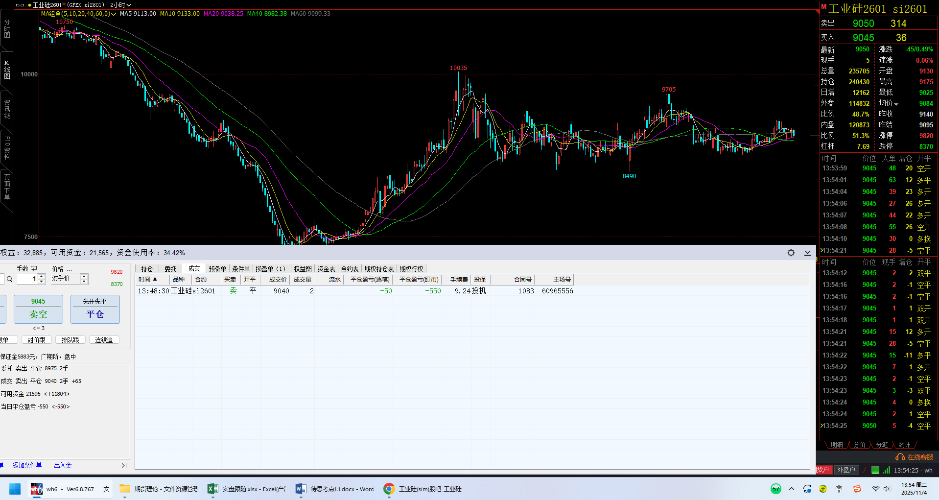 2025年11月3日9:02,工业硅01合约9045多单两手,止损8980.11月4日13:48,9040主动清仓。基本不亏不赚,本单结束,看不太懂,先不做了。