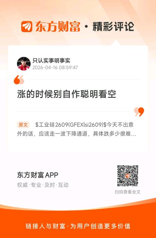 $工业硅2609(GFEX|si2609)$今天不出意外的话,应该走一波下降通道,具体跌多少很难把握,原因做多的庄家还没有出来,所有这两天不断的上上下下,吸引买盘跟进做多,庄家慢慢出货,最后全身而退,留下一大帮韭菜站在山顶。