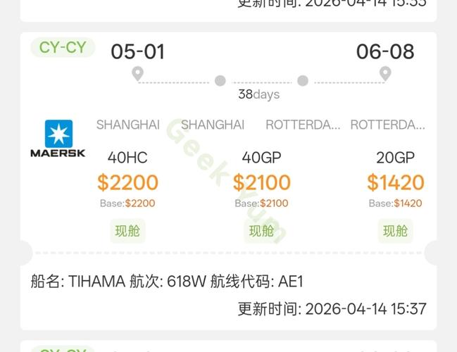 马士基5月1日平开2100/2200,现价是否到底了