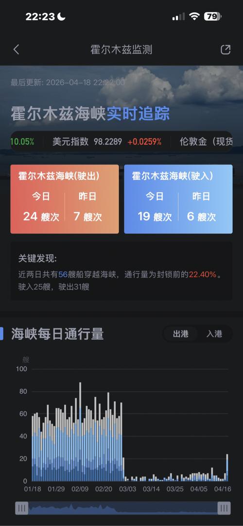 $原油2605(INE|sc2605)$不管大家信不信霍尔木兹监测结果昨天有44艘船只进出海峡,截止到今天上午8点已经有14艘船只进出海峡。