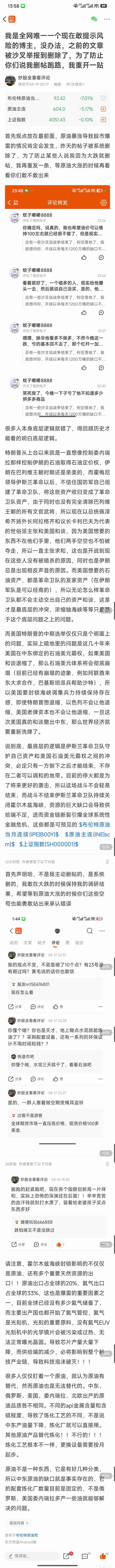 $沪银主连(SHFE|agm)$$沪金主连(SHFE|aum)$$原油主连(INE|scm)$有黑子钓鱼执法我,第一我一直有baishi茶礼f第二他上来给我看持仓做了一堆乱七八糟的期货和股票,问我看法,对于我不专业的我保留了看法,后续他骗我说自己是千万级别的玩家,要和我学习玩这个,要我多多重视,后续我也没有说过什么打包票的话,也没让他下单,直到今天他追加做了一手油的单,现在波动下他连同自己本来的单...