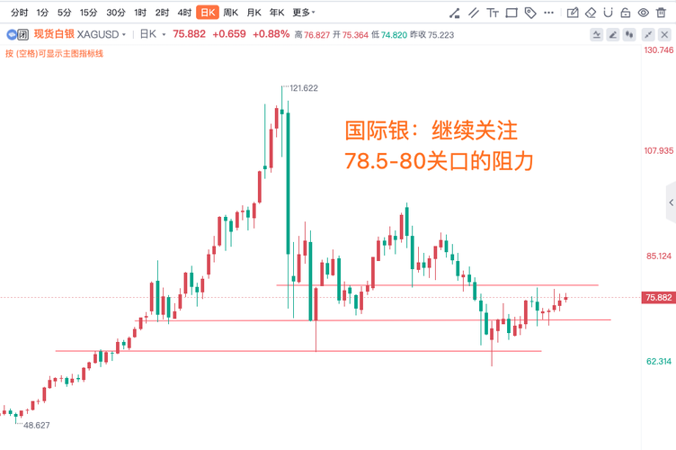 国际银:继续关注78.5-80关口的阻力,沪银:继续关注19150的阻力得失