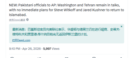 $沪银2606(SHFE|ag2606)$最迟下周,一定会重启战端,而且烈度会比第一次显著上升。 双方都已经放弃谈判了,十几个小时前,美国撤走了在伊斯兰堡部署了十几天的安保人员和安保器材,足足两架大型运输机才拉完。与此同时,作为美以低级别谈判代表(对标伊朗外长)的老川亲友团二人组压根没出发,相当于是明确表态拒绝谈判。 同时刚才传出消息,伊朗胆敢开挖去年六月被炸的两个地下核基地(其实应该是只有一个安...