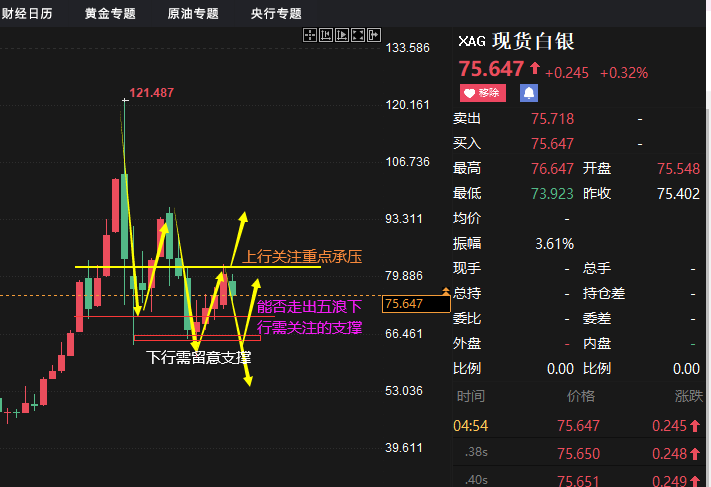白银:73.5是多头还能否起航的核心支撑,沪银:19100重新企稳多头才能重新起航