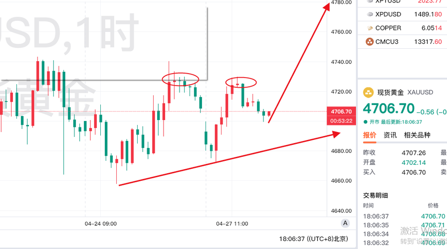 4.27日欧美盘:黄金和白银走势,个人猜测!!!