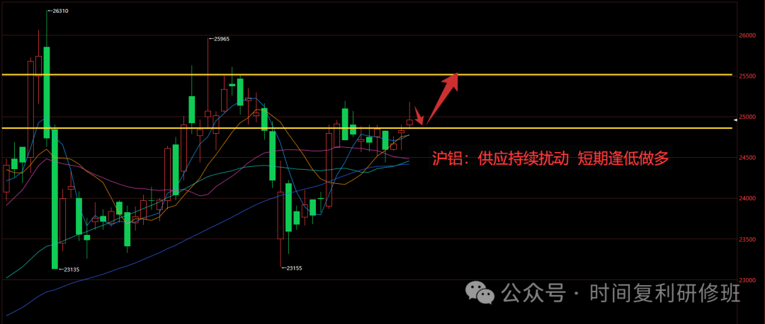沪铝2606合约 核心逻辑:美伊冲突导致中东及非洲超300万吨电解铝产能非计划停产(停产周期6-12个月),全球供需平衡表重估;国内铝棒库存下降、加工费反弹,下游需求边际回暖,铝锭库存拐点或于4月下旬出现。 关键点位:上方压力25200-25500,下方支撑24800-24600。 操作建议:回踩24800-24600附近企稳做多,目标25200-25500。 免责声明:具体操作点位随事实动态为准...