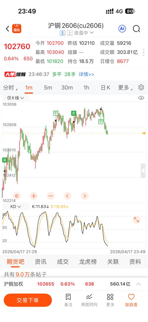 $沪铜2605(SHFE|cu2605)$石油大跌他跟着,我都看不懂,做多的我差一点跑,还好稳住了