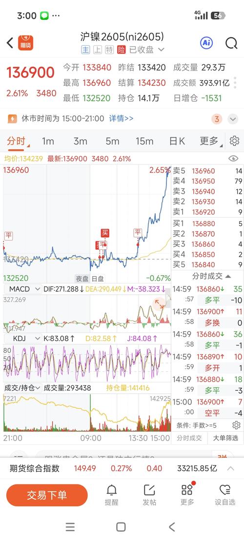$沪镍2605(SHFE|ni2605)$这么的,真猛啊,还好我跑得快,要不然留守要干我六手最少2000点。亏了300点跑的。尾盘空了两手,136940。希望晚上有个2000点的利润,这样就可以直接下班了