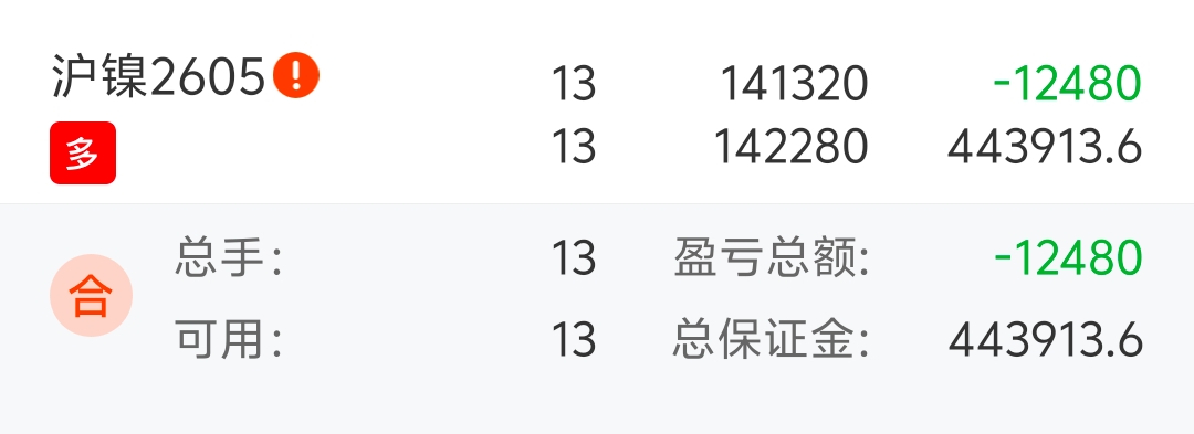 $沪镍2605(SHFE|ni2605)$还有133000的空单还扛着没走的吗??