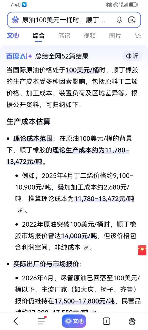 $丁二烯胶2605(SHFE|br2605)$ $橡胶2605(SHFE|ru2605)$ 百度智能生产观点: 当国际原油价格处于100美元/桶时,顺丁橡胶的生产成本受多种因素影响,包括原料丁二烯价格、加工成本、装置负荷及区域差异等。根据公开资料,可归纳如下: 生产成本估算 理论成本范围:在原油100美元/桶的背景下,顺丁橡胶的理论生产成本约为11,780–13,472元/吨。 例如,2025年4...