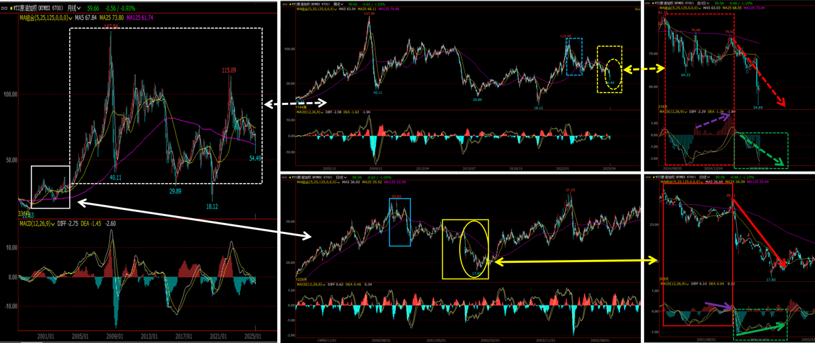 关于原油的宏观大级别走势结构,前几天终于触碰到了这个品种的走势结构本质真相,今晚继续深入后,走势结构的相关情况整理成了现在的帖子。 原油走势结构本质真相就是:白色实线框框与白色虚线框框,两个走势结构,后者的相比前者除了级别扩大特性之外,这两处的走势结构其实就是“同胚(镜像颠倒)”关系。谜底揭穿后,才发现真相居然如此简单。在此认知基础上,原先对于原油走势结构的千头万绪的各种揣摩思考,就一下子寻找到了...