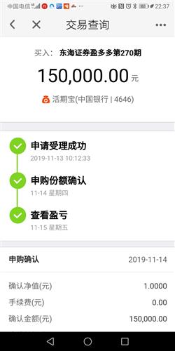我在2019-11-1314:58:27买入了东海证券盈多多第270期。