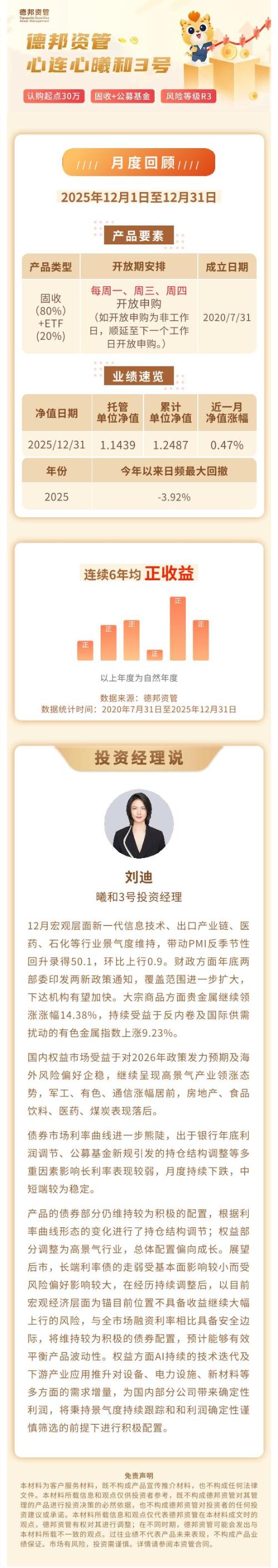 截至2025年12月31日,曦和3号月度业绩表现及市场观察: