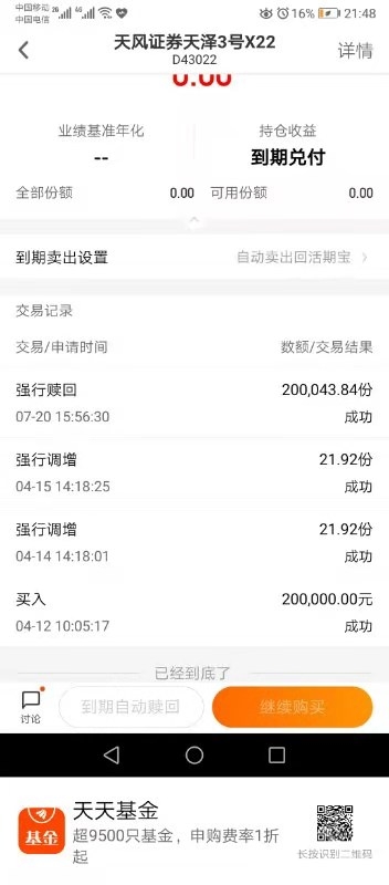 2020年12月买入,放了半年,相当于零收益!天天基金和天风证券要说明原因!