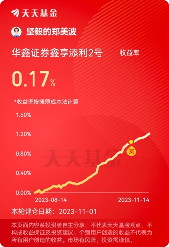 全部 热门 最新评论 最新发帖 全部 全部 个人号 机构号 独立自主de菠菜 发表于 2024-10-11 13:47 95次浏览 什么垃圾 分享 评论 2 赚钱小公主 发表于 2024-09-12 20:40 113次浏览 啥情况 分享 评论 1 Sunny_88 更新于 2024-01-02 22:24 303次浏览 大神们这个咋样?准备买呢 分享 2 3 股友wiebve : 还有别的更好些的 吃饱穿暖万事无忧 :可以的 犇犇冲鸭 更新于 2023-12-15 17:47 219次浏览 有谁知道这个规模多大? 分享 1 赞 吃饱穿暖万事无忧 :四千万不到 袋鼠财富贝 更新于 2023-11-27 13:37 198次浏览 #晒收益#还行 分享 1 2 Sunny_88 :两周收益率吗?这个没有业绩报酬抽取 犇犇冲鸭 发表于 2023-11-14 12:10 129次浏览 赎回多长时间到了账 分享 评论 赞 发帖 APP内打开