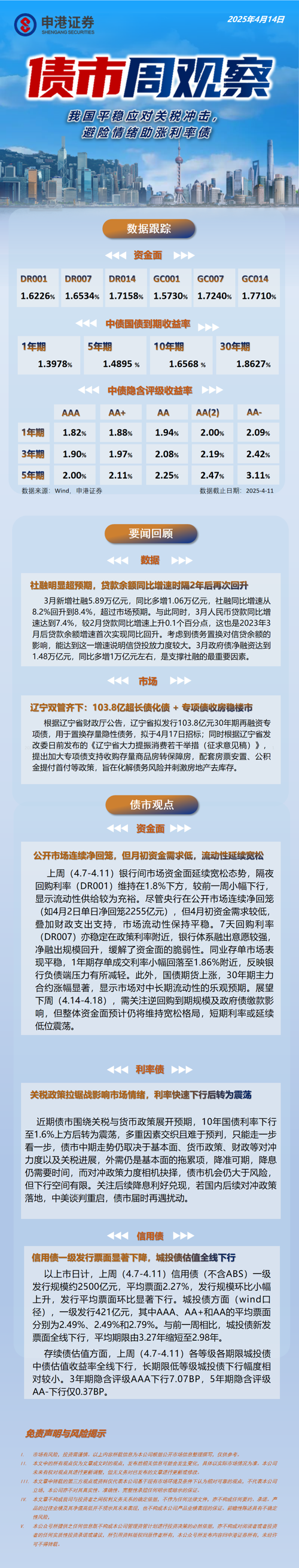 债市周观察:我国平稳应对关税冲击,避险情绪助涨利率债