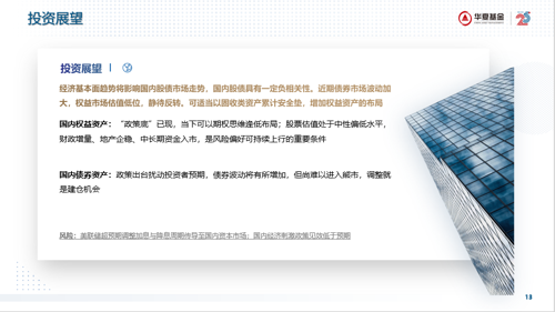 1⃣天时:政策利好紧跟市场风向机遇正当时国内债券资产:政策出台扰动投资者预期,债券波动将有所增加,但尚难以进入熊市,调整就是建仓机会。国内权益市场:“政策底”已现,当下可以期权思维逢低布局;股票估值处于中性偏低水平,财政增量、地产企稳、中长期资金入市,是风险偏好可持续上行的重要条件2⃣地利:股债混合债券增强发力力争超额弹性产品根据宏观经济运行状况、政策形势、利率走势、信用状况等的综合判断,...
