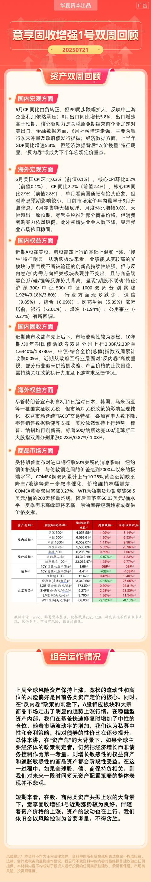 华夏资本-意享固收增强1号双周回顾(2025-7-21)