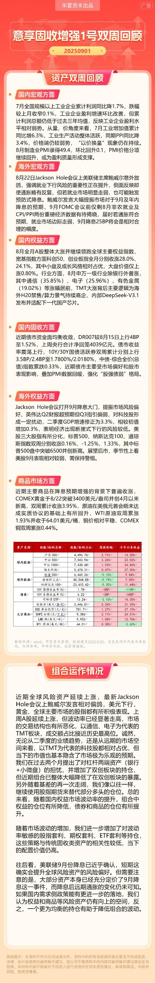 华夏资本-意享固收增强1号双周回顾(2025-9-1)