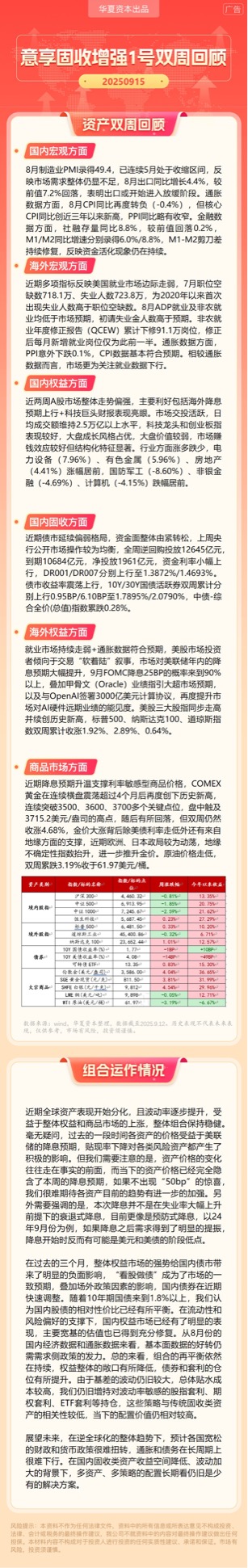 华夏资本-意享固收增强1号双周回顾(2025-9-15)