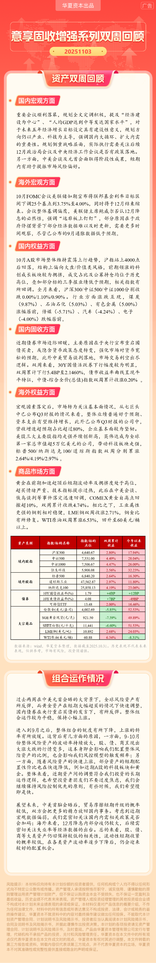 华夏资本-意享固收增强1号双周回顾(2025-11-3)