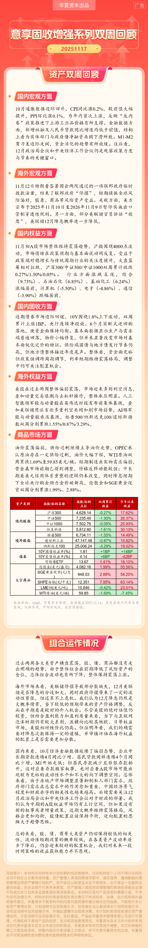 华夏资本-意享固收增强1号双周回顾(2025-11-17)