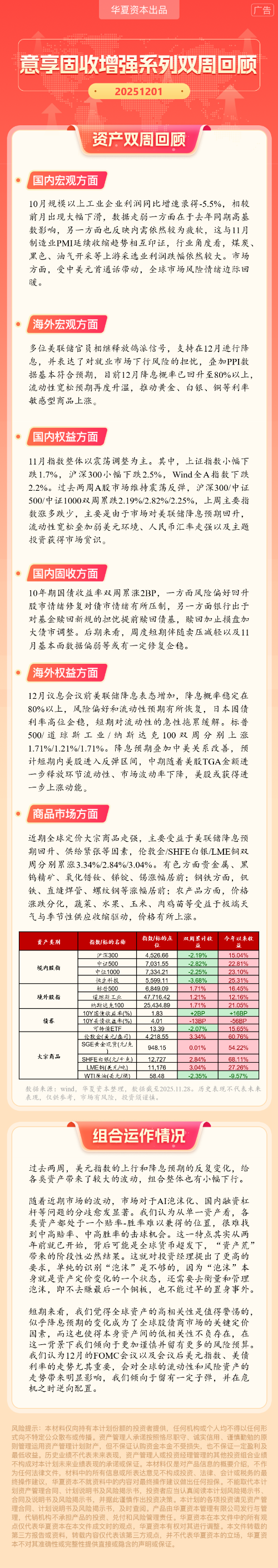 华夏资本-意享固收增强系列双周回顾(2025-12-1)