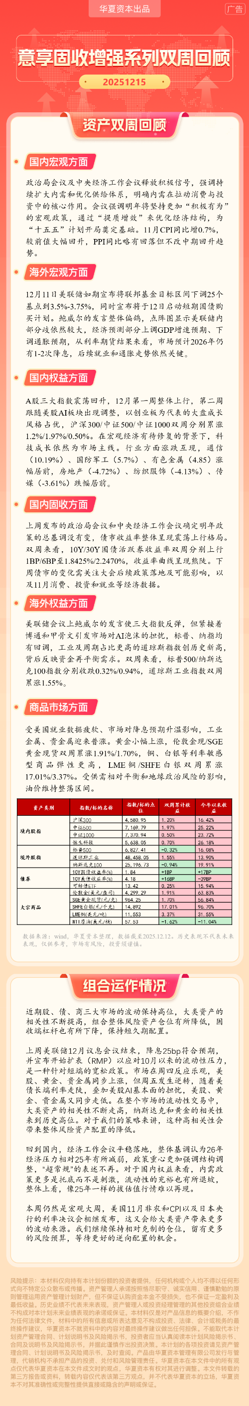 华夏资本-意享固收增强系列双周回顾(2025-12-15)