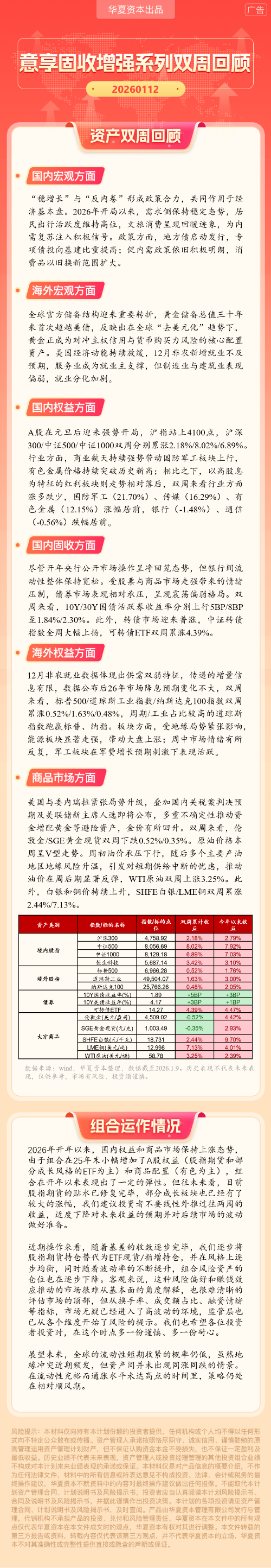 华夏资本-意享固收增强系列双周回顾(2026-1-12)