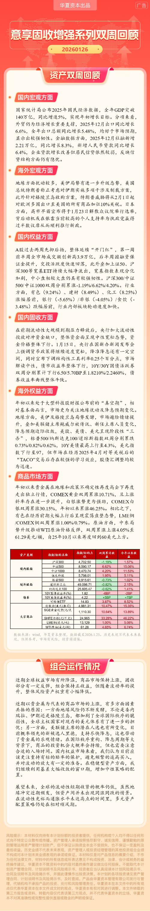 华夏资本-意享固收增强1号双周回顾(2026-1-26)