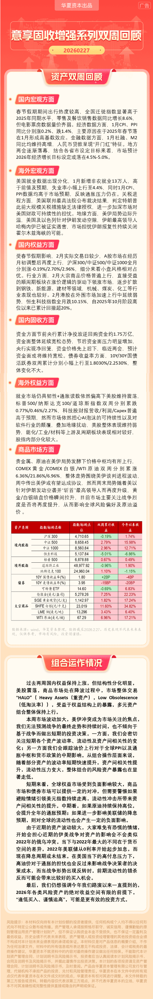 华夏资本-意享固收增强1号双周回顾(2026-2-27)