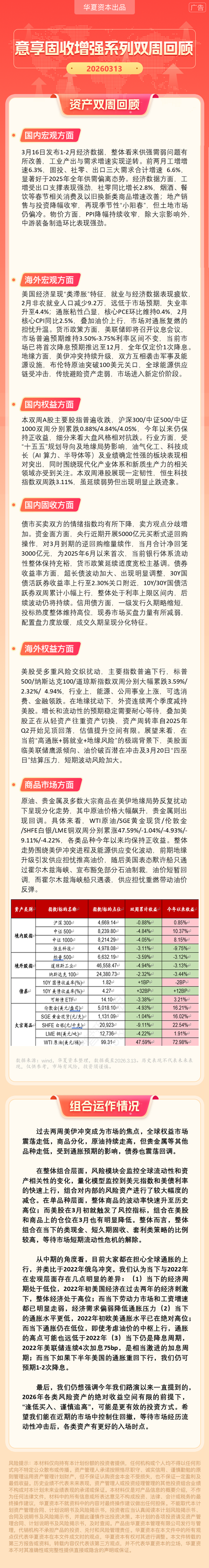 华夏资本-意享固收增强1号双周回顾(2026-3-13)