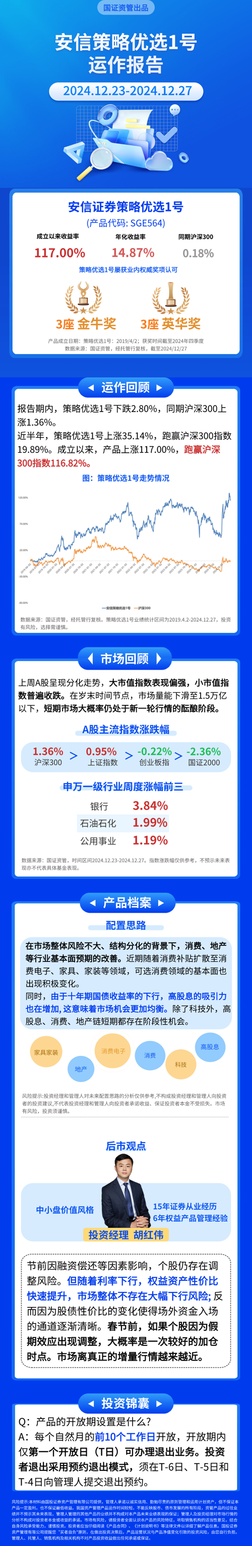 感谢您选择安信资管策略优选1号,更感谢您的一路陪伴,共同经历艰难时刻。选择优秀的产品,时间的玫瑰终会盛放,小安会始终陪伴每一位投资人