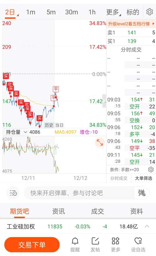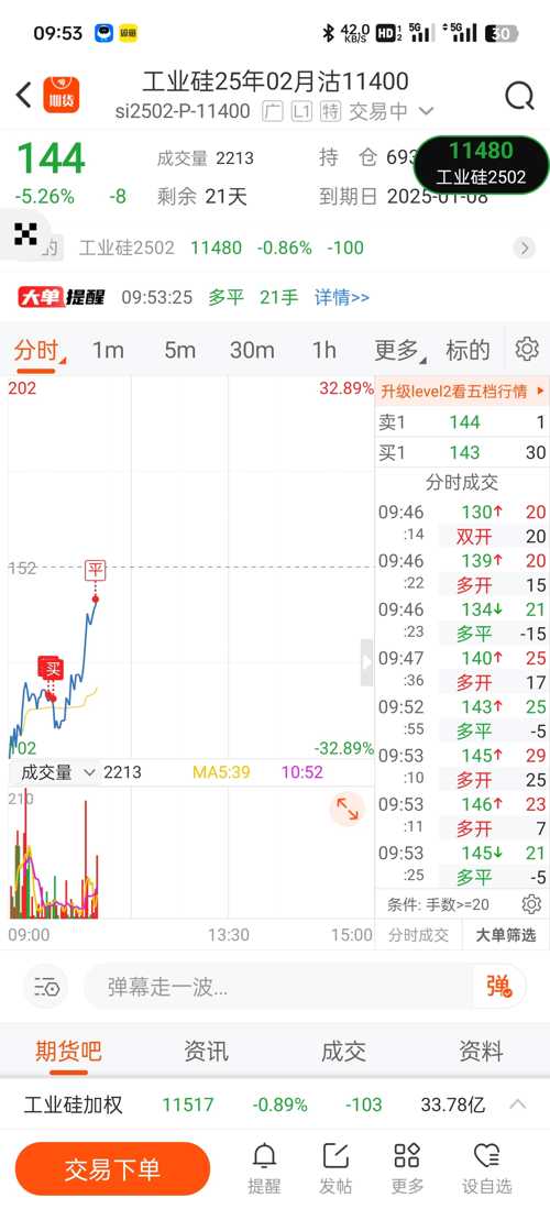 期权翻倍打法 更新于 2024-12-12 09:19 142次浏览 $工业硅25年02月沽11600(GFEXOPTION|si2502-P-11600)$小赚几k,留下的老板发财 15