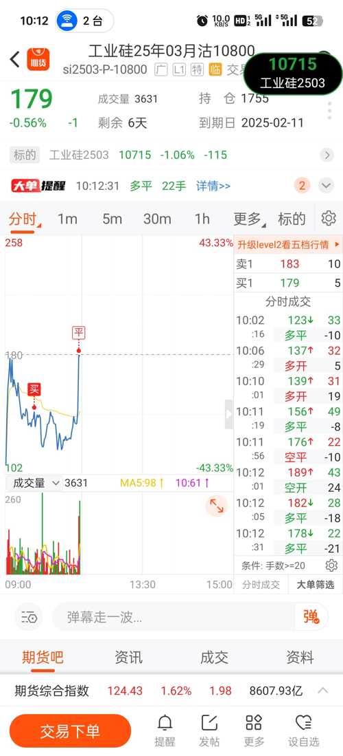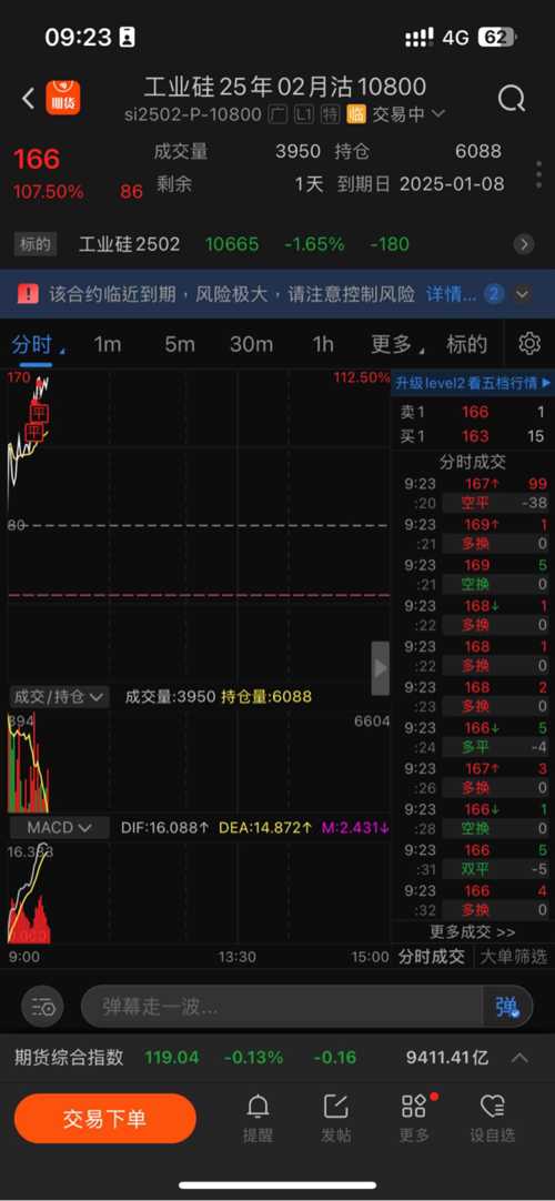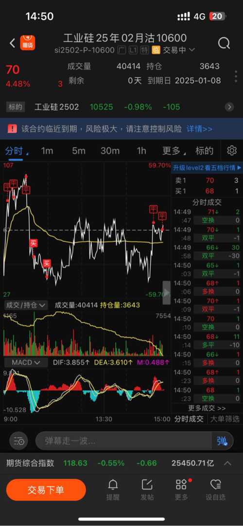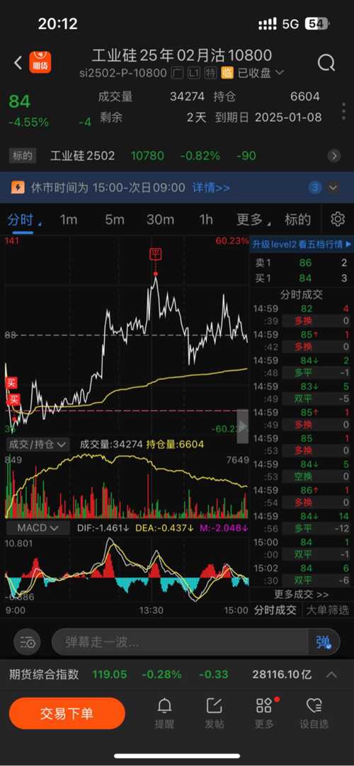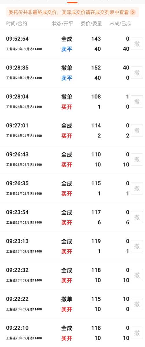 期权翻倍打法 更新于 02-12 22:13 268次浏览 见好就收,留下的老板发财$工业硅25年03月沽10800(GFEXOPTION|si2503-P-10800)$ 33