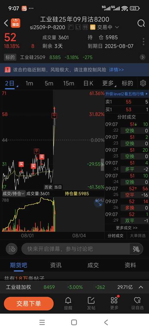 爱吃西瓜炒股养家 更新于 07-18 14:11 411次浏览 $工业硅25年09月沽8500(GFEXOPTION|si2509-P-8500)$底仓格局一把? 15