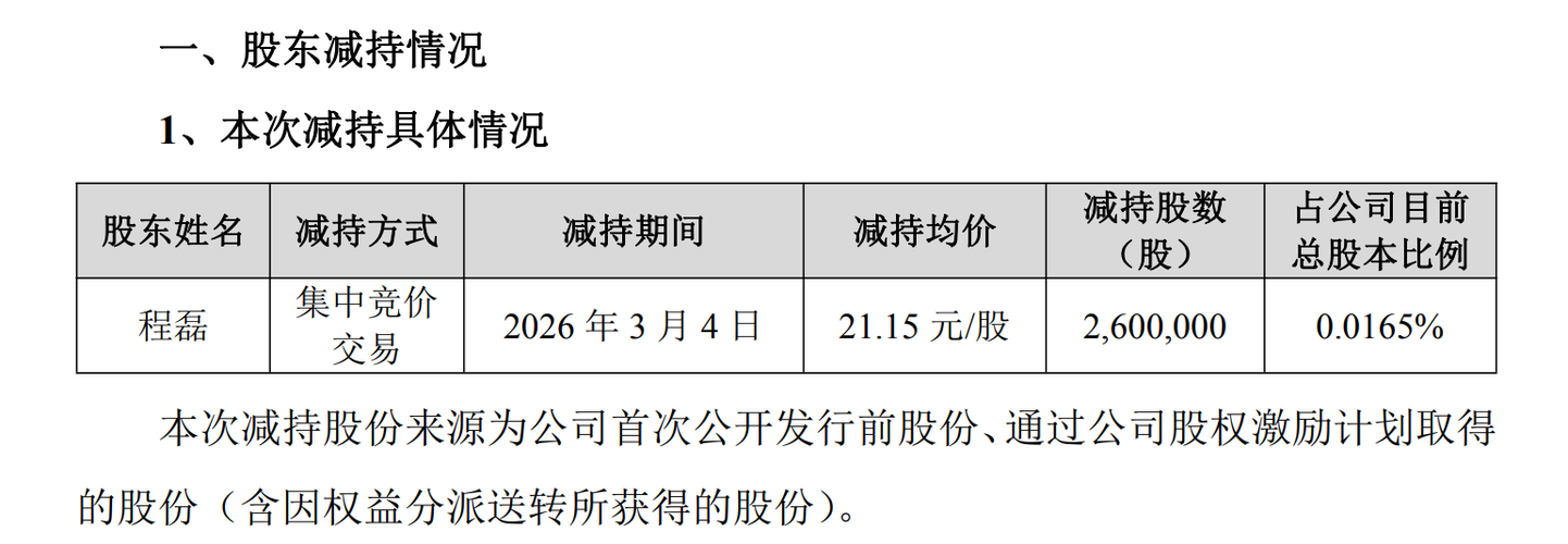 国信证券:您好,感谢您对公司的关注。公司已于2026年4月1日披露《关于股东减持计划期限届满暨实施情况的公告》(公告编号:2026-011),请您查阅公司在深交所网站及指定媒体发布的公告信息。谢谢!