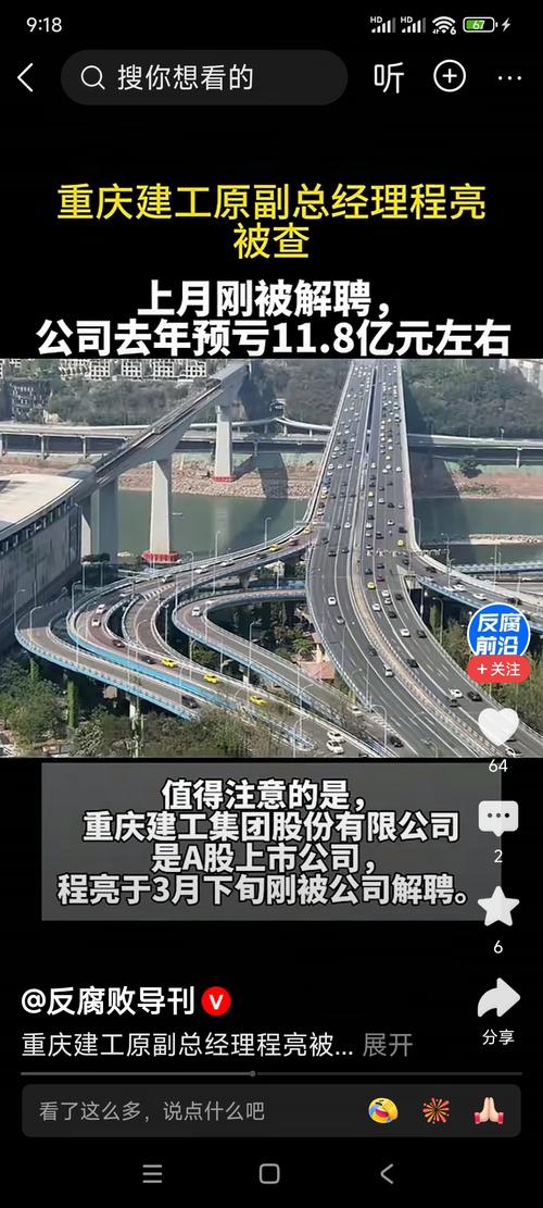 资讯 重庆建工原副总经理程亮被查,上月刚被解聘,公司去年预亏11.8亿元左右