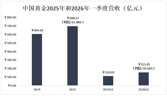 格隆汇4月28日丨中国黄金(600916.SH)发布2026年一季报显示,公司一季度实现营业收入153.45亿元,同比增长39.46%;归母净利润1.64亿元,同比增长21.69%;扣非归母净利润1.62亿元,同比增长21.60%。