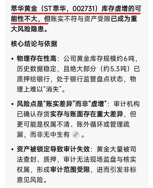 $ST萃华(SZ002731)$最多0.71吨黄金存在重大差异,慌什么慌