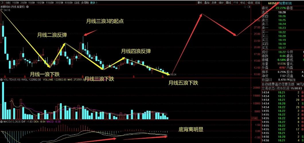 迪贝的日线走势一笔上折返没走完...继续等