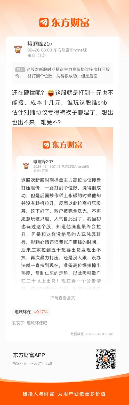 $惠城环保(SZ300779)$这个LJ害了不少人
