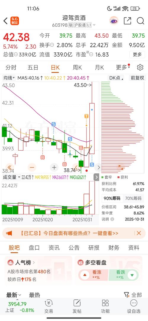 $迎驾贡酒(SH603198)$ 车上的兄弟你们谁把我的筹码买走了