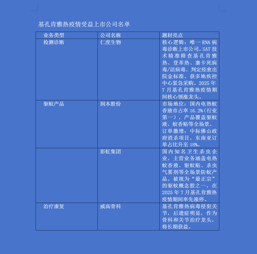 基孔肯雅热、登革热受益的上市公司名单如下