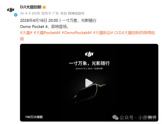 $豪威集团(SH603501)$大疆官方正式宣布,OsmoPocket4系列将于4月16日20:00正式发布,产品主打“一寸万象、光影随行”。 价格方面,Pocket4标准版起售价3499元,Pro版本将于6月上市,定价4999元起。