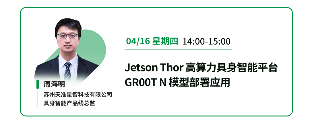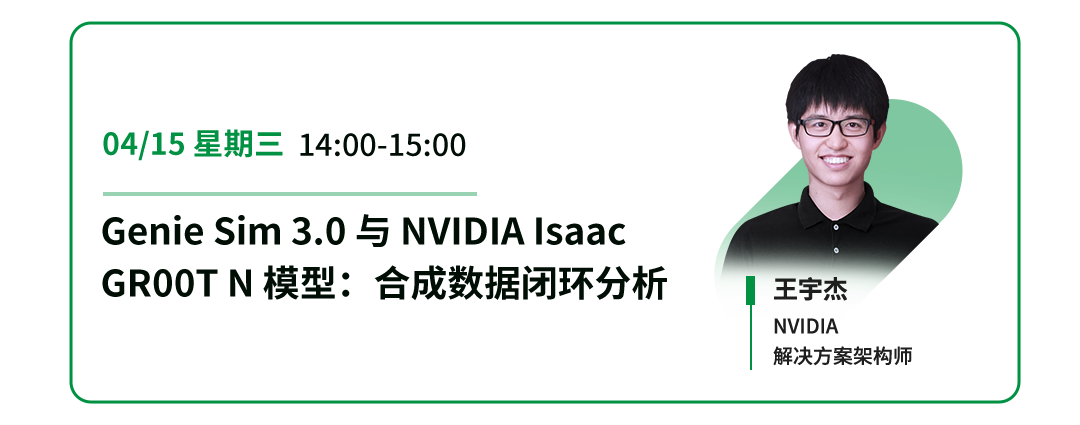 随着“PhysicalAI”成为机器人产业核心演进方向,通用机器人落地正面临仿真效率不足、训练数据匮乏、边缘部署难度高等现实痛点。为系统性破解上述瓶颈,天准星智与NVIDIA联合生态伙伴推出全栈机器人解决方案,贯通“仿真—训练—部署”全链路。 2026年4月14日至16日,每天14:00-15:00,“NVIDIA机器人技术实战三部曲”系列网络研讨会将正式开讲。三场演讲深度拆解IsaacLab、G...