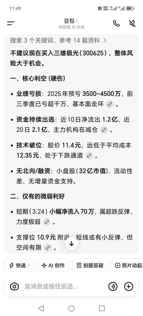 $三雄极光(SZ300625)$ 用豆包玩玩