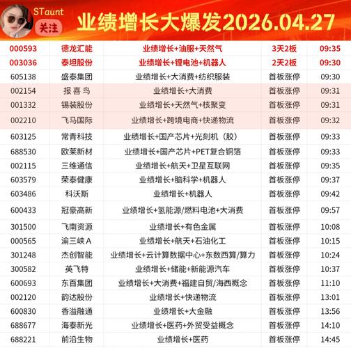4月27日涨停梯队全景复盘:一季报主线霸榜,AI算力与芯片题材接力! 今日的涨停分布展现了当日市场的主线热度。一季报增长板块以18只涨停股成为绝对核心主线,AI算力、芯片题材各有7只涨停股紧随其后,电力、通信、机器人等题材多点开花,连板梯队呈现高标领涨特征,市场资金聚焦业绩确定性与科技成长双方向。 涨停个股梳理 1.飞南资源:一季报增长板块涨停标的,一季度业绩显著增长,受益于资源品价格与行业需求回...